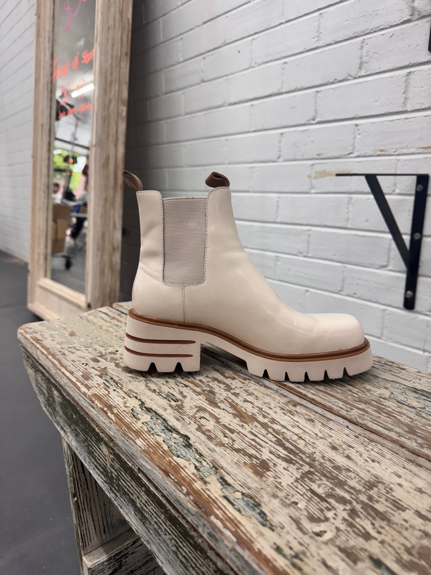 Step into effortless style with the Breda, a classic elastic-sided leather boot that's anything but boring. The squared-off toe and two-toned chunky sole give this vanilla beauty a modern edge, while the stretchy sides mean you'll slip them on and forget you're wearing them. Perfect for those days when you want comfort without compromising on cool.