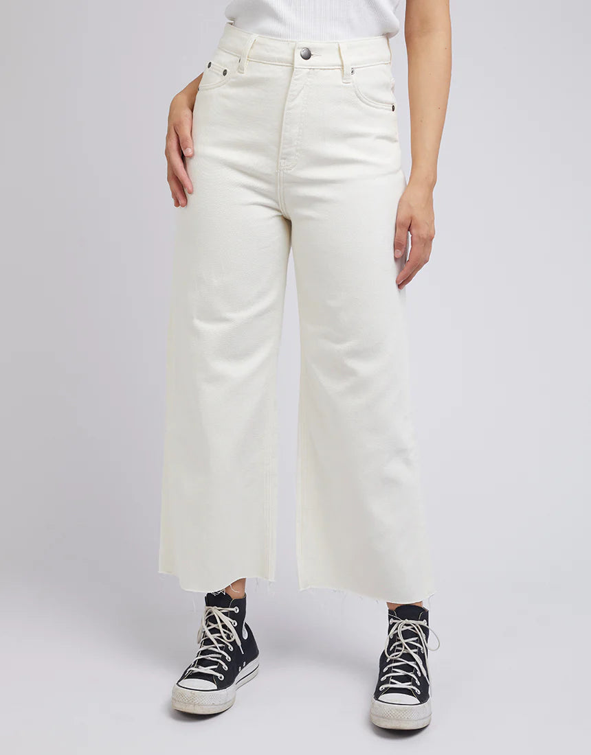 The Charlie High Rise Wide Leg denim jeans feature classic five pocket styling, heritage blue wash, high waisted and a wide leg fit.
