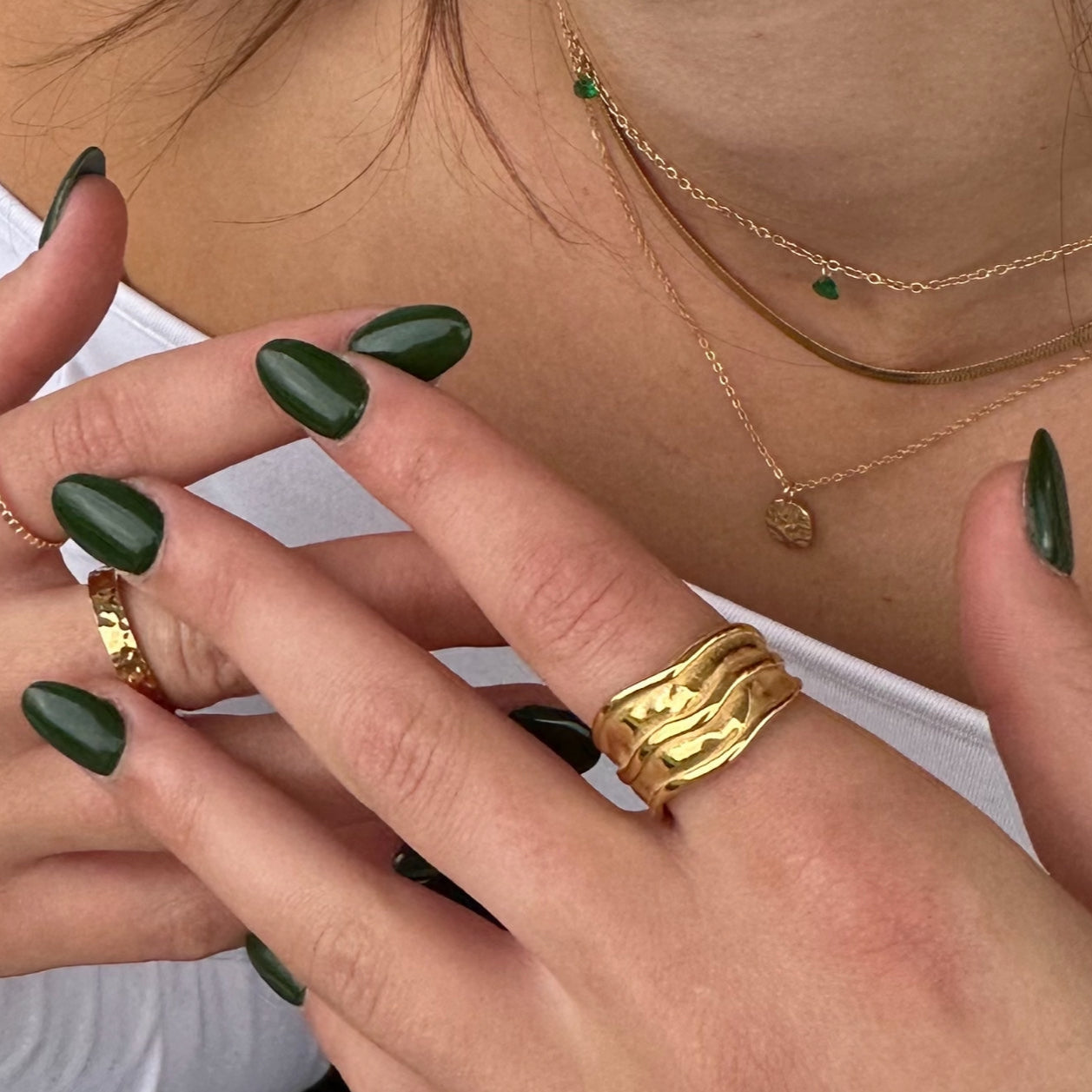 Its wavy design flows smoothly across your finger, catching the light with every movement.