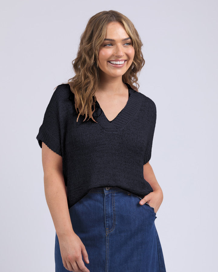 Say hello to the elba knit top, short sleeves, light yarn, and ribbed hem. Style it your way for an effortless look that works for any day of the week.