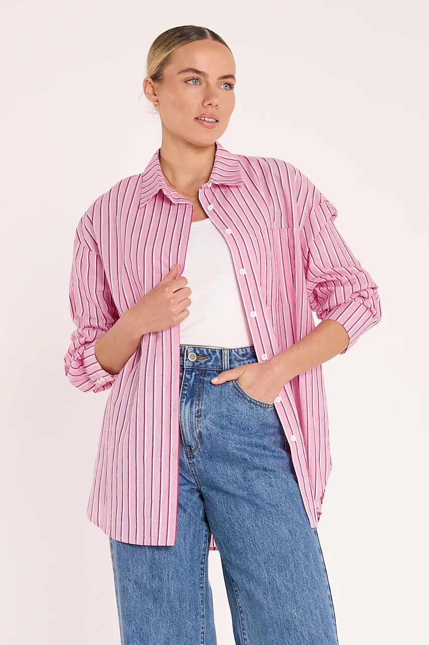 Emily Shirt | Pink Burgundy Stripe