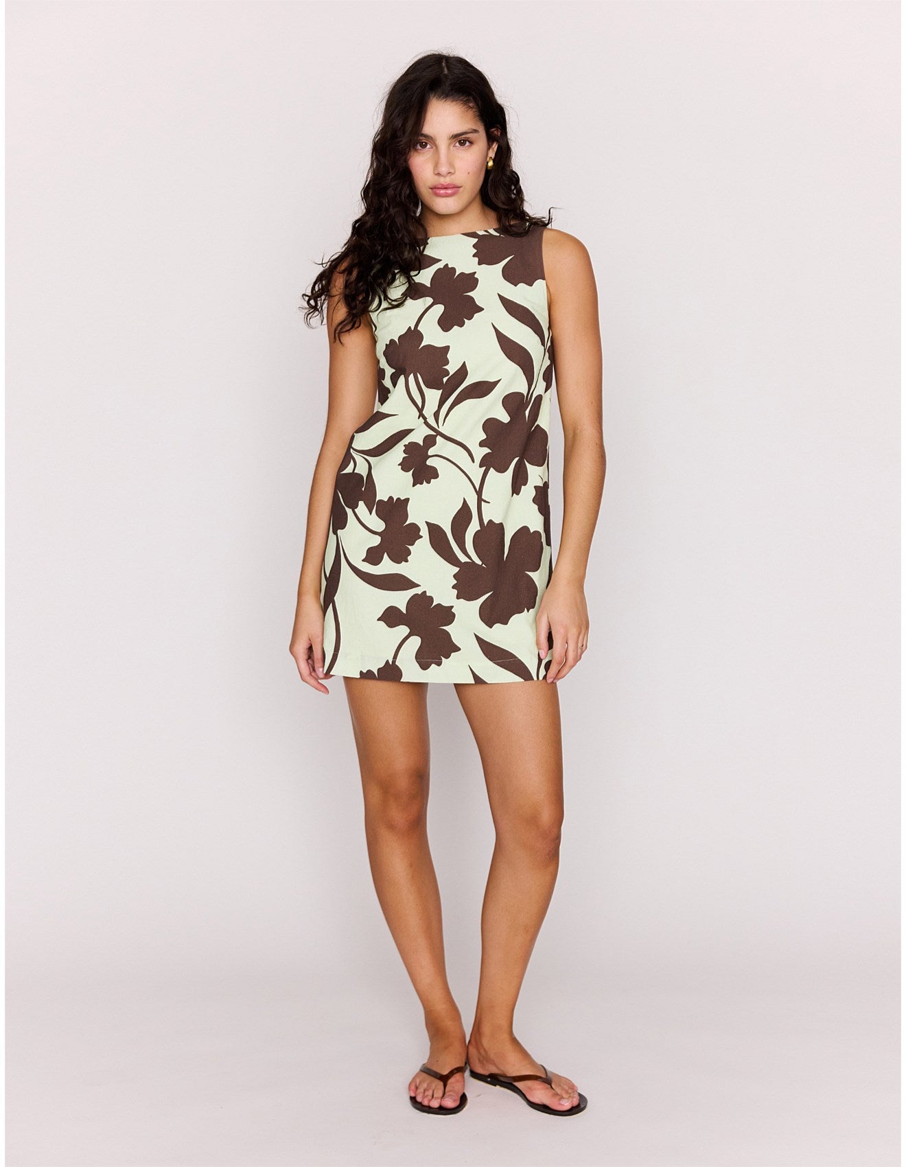Clean, cool and effortlessly chic. This shift mini dress features a high neckline and relaxed silhouette with a statement low-back detail for a subtle twist. Crafted in breathable cotton and finished in a bold floral print, it’s the perfect easy throw-on for warm days and nights.