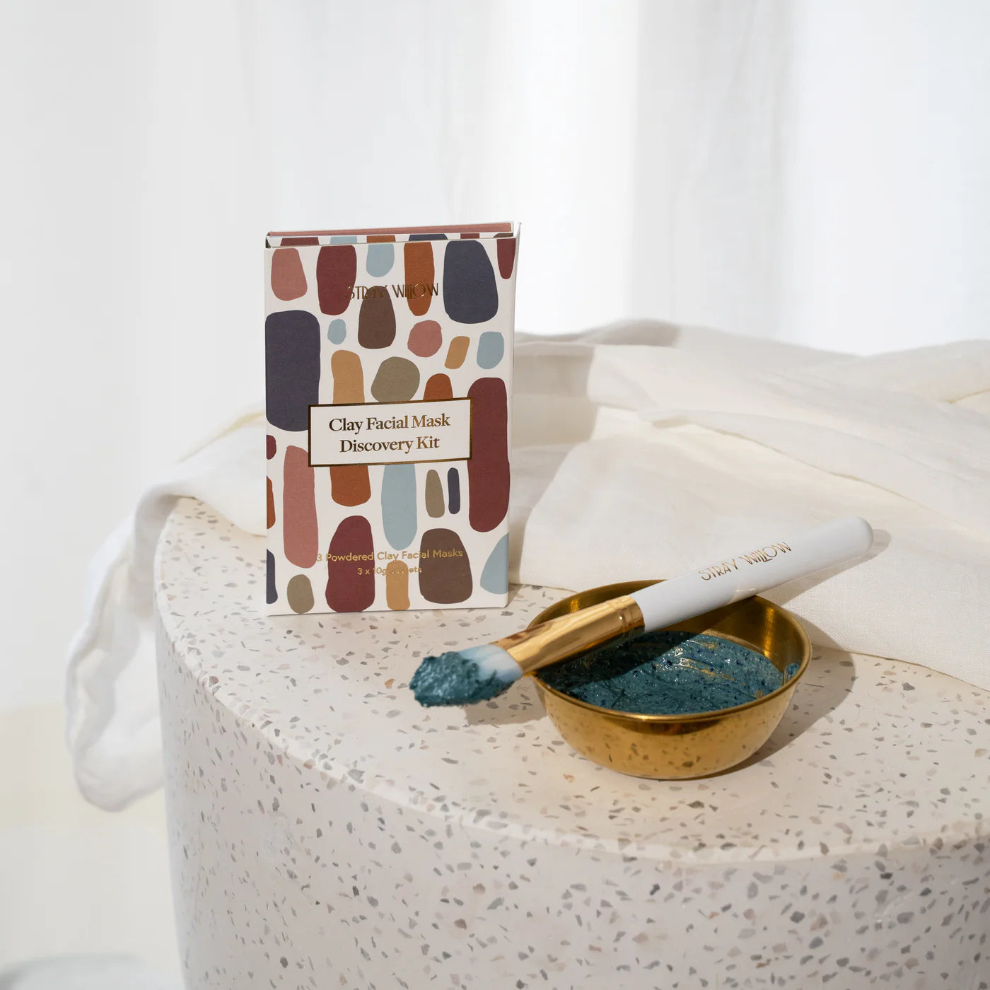 Discover radiant skin with our Australian-made Face Mask Discovery Set, featuring three natural clay masks—Pink Vitamin C for brightening, Blue Tansy for gentle exfoliationg and sensitive skin soothing, and Green Smoothie for detoxifying. Thoughtfully crafted with premium botanical ingredients, each mask offers a unique mindful self-care ritual to nourish and transform. Beautifully presented in sustainable recyclable pouches and compostable cellos, this luxury skincare set is perfect as a thoughtful wellness gift or for experiencing all three natural face mask blends. Handcrafted in Australia with our commitment to clean beauty and meaningful moments of care.
