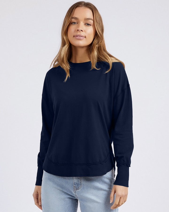 A new crew to the Foxwood range the Farrah Long Sleeve in 100% Fresh Pima Cotton features a classic crew neckline and raw edge detail. This relaxed fit jumper is an easy everyday wear.