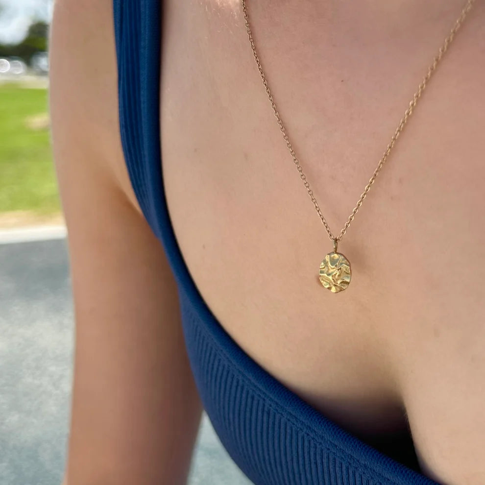 With a ripple disc charm that catches the light, this piece brings just enough texture to feel styled, not overdone.