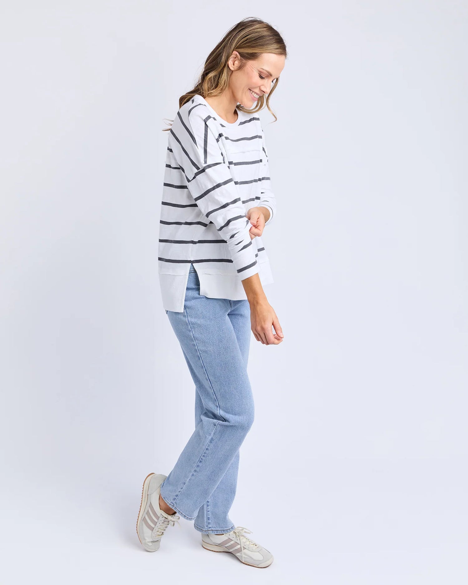 The Jayne Throw on Top is the perfect lightweight long sleeve to take you through the seasons. Cut from a comfy, cotton slub jersey this women's top features a crew neck, trendy exposed stitching and side split hi-low hem. Seriously versatile we know you'll be wearing this on repeat.