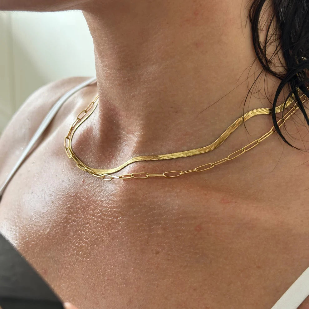With sleek rectangular links, this necklace brings bold energy without bulk. Designed to move with you, from early runs to late-night hangs, it’s your low-fuss, high-impact go-to.
