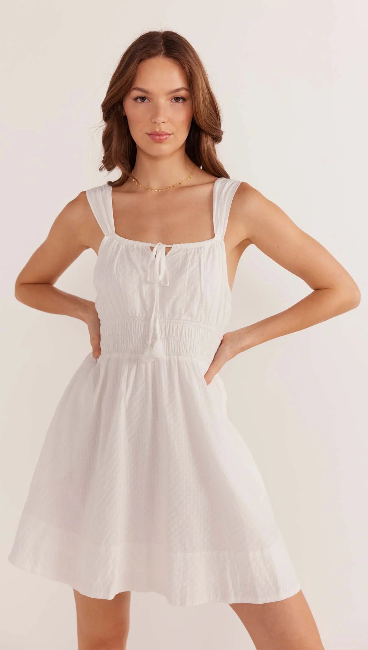 The Lotus Drawstring Mini Dress is the perfect Summer dress. Providing the ultimate amount of comfort and style this dress is perfect for whether you just want to lounge around the house looking cute or explore the city with your favourite girlfriends. The soft flowy fabrication will have you feeling like theres a gentle breeze on a warm sunny day. Style with strappy flats and a rattan bag or dress it up with coven wedges and statement earrings to complete the look.