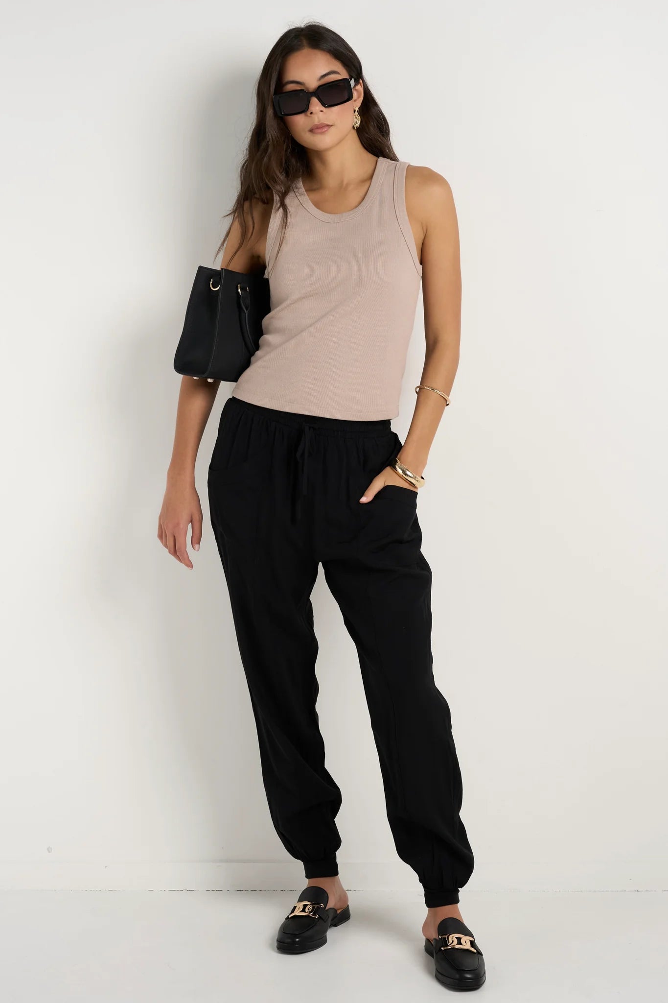 New Warrior Black Relaxed Drapey Drawstring Stretch Cuff Pant
