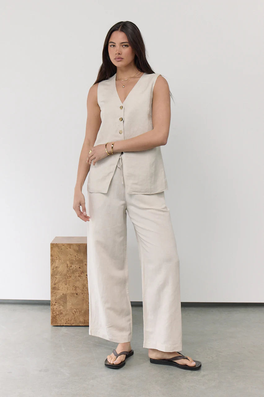 Designed in a lightweight and comfortable fabrication, the versatility of the 'Sydney Pant' in Beige is endless!